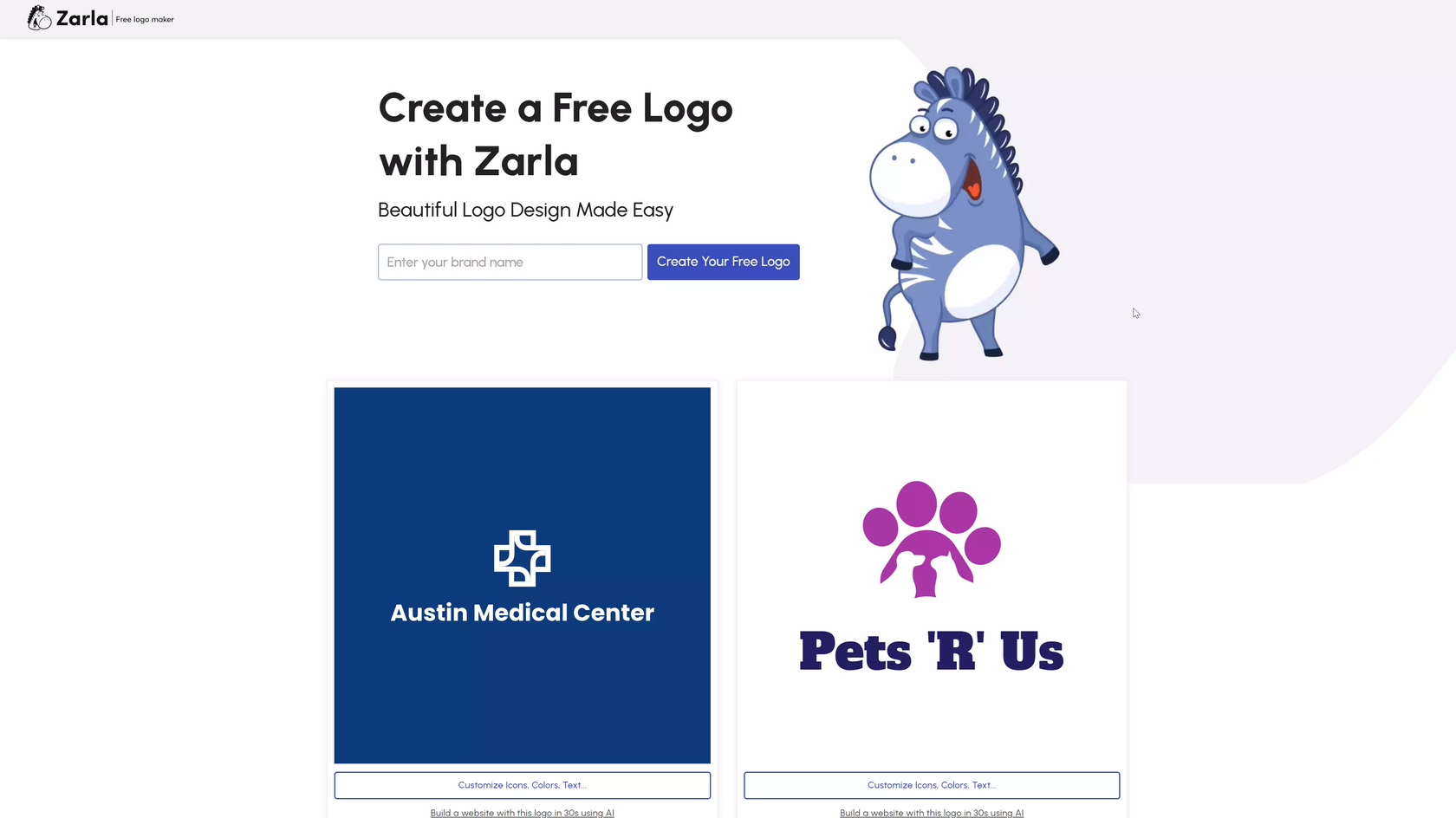 Zarla — платформа для быстрого брендинга: бесплатно генерирует и редактирует логотипы, предлагает AI-идеи названий с проверкой доменов и соцсетей, а также помогает запустить сайт для бизнеса с автоматическим on-page SEO. Подходит предпринимателям, студиям